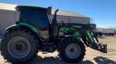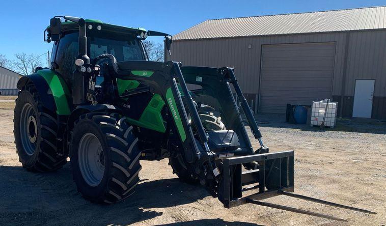 This 2020 Deutz Fahr 6140 MFWD tractor has 863 hours on the meter, with miles or hours possibly varying as the unit is still in use. It is powered by a 136 HP 3.8L Deutz Fahr Farmotion 4-cylinder diesel engine and features a 60F – 60R powershift transmission with left-hand reverser, creeper, and super creeper gears, along with a differential lock. The operator’s station includes A/C and heat for comfort. The tractor is equipped with a 540/1000 PTO, three-point hitch, top link, seven-pin outlet, and 5 hydraulic remote sets. It also includes power beyond for hydraulics.