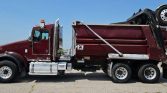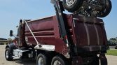 The Reliance steel dump bed measures 15 feet long and 103 inches wide, with a side height of 68 inches. It includes a liner, roll tarp, single ram, and an air-operated end gate.