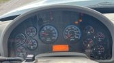 The 2015 International 7500 SBA dump truck has 101,590 miles and 478 hours on the meter. It is powered by a 9.3L 6-cylinder diesel engine with an engine brake and an Allison automatic transmission. The chassis is a triple-axle configuration with a double frame and a pusher axle. It includes an inter-axle differential lock, spring-over walking beam suspension, air brakes, and a PTO. The GVWR is 52,000 lbs, with a front axle weight rating of 12,000 lbs and both intermediate and rear axle ratings of 20,000 lbs. Inside, the truck is equipped with AC, heat, and cruise control. The steel dump bed measures 16 feet long and 8 feet wide, with a side height of 56.5 inches and an additional 6-inch side board. It has a single ram hoist, a roll tarp, and an air-operated end gate. Tires are sized 425/65R22.5 on the front, 11R24.5 on the rear, and 315/80R22.5 on the lift axle.